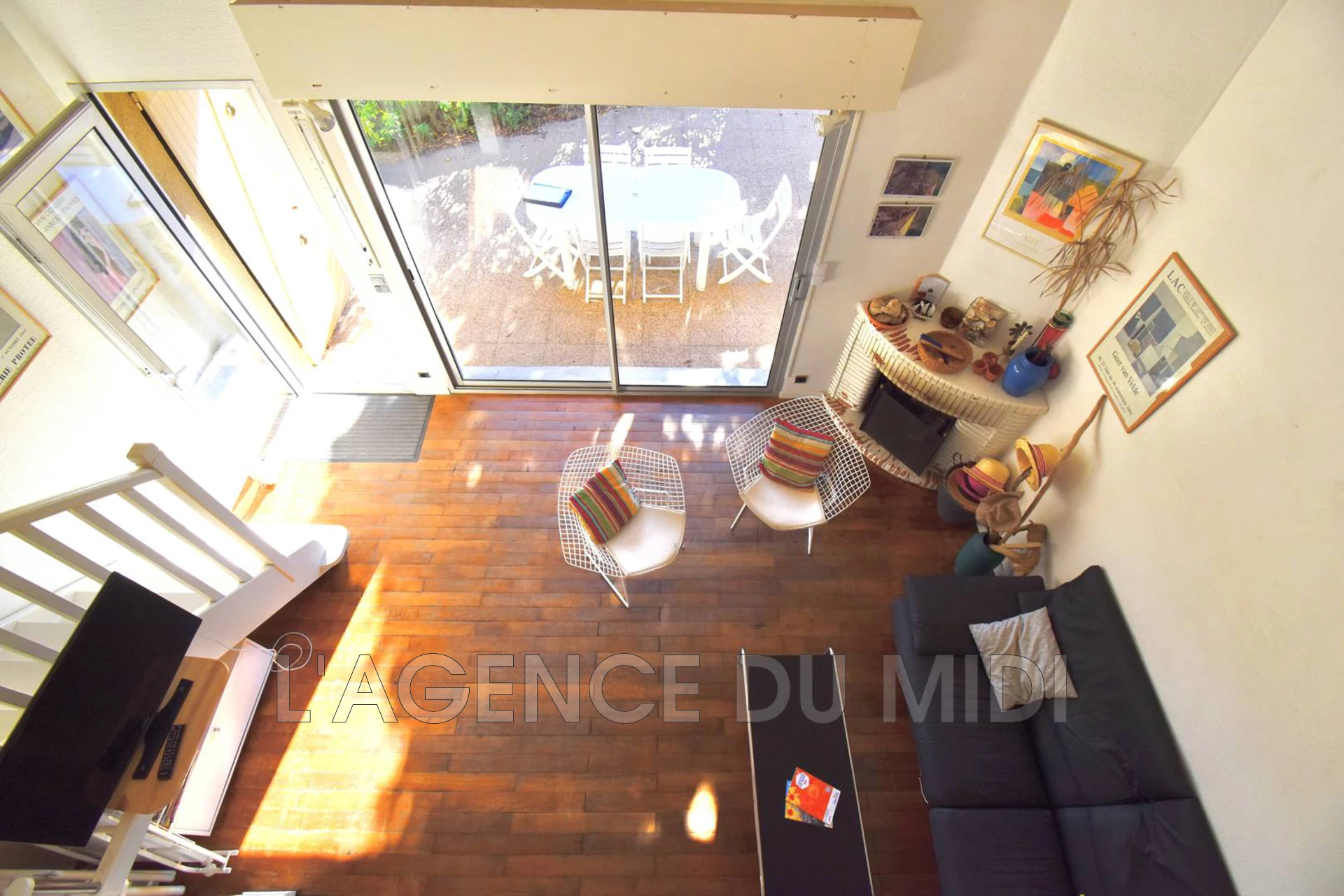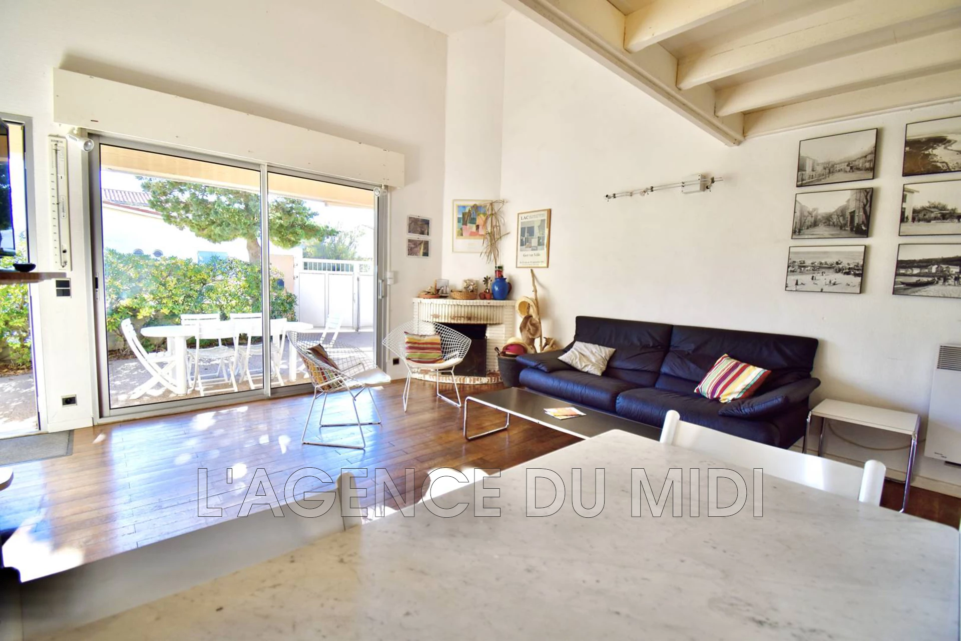 - Un coin repas, un coin salon avec un canapé trois places et deux fauteuils.