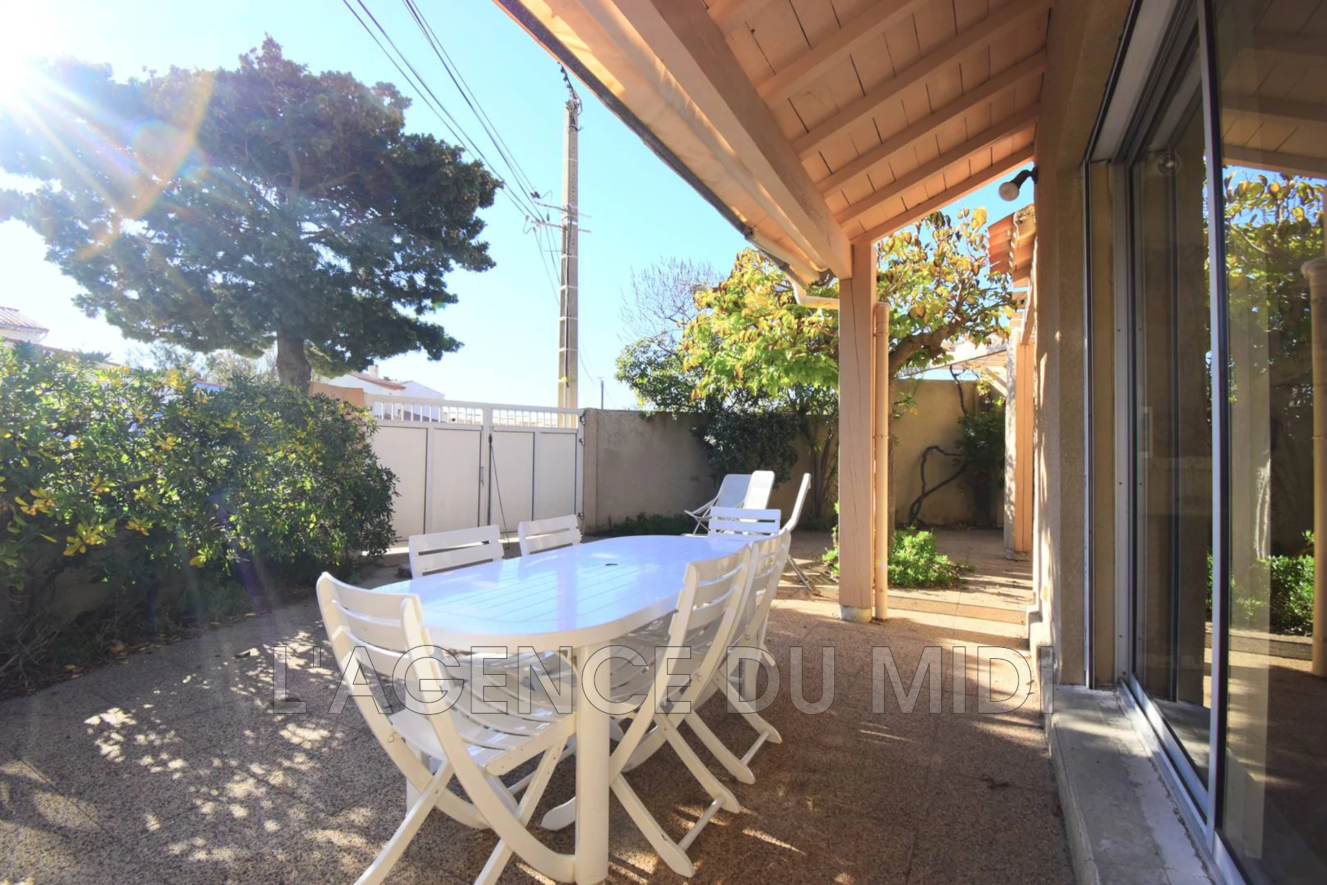 - Terrasse ombragée par un store banne manuel.