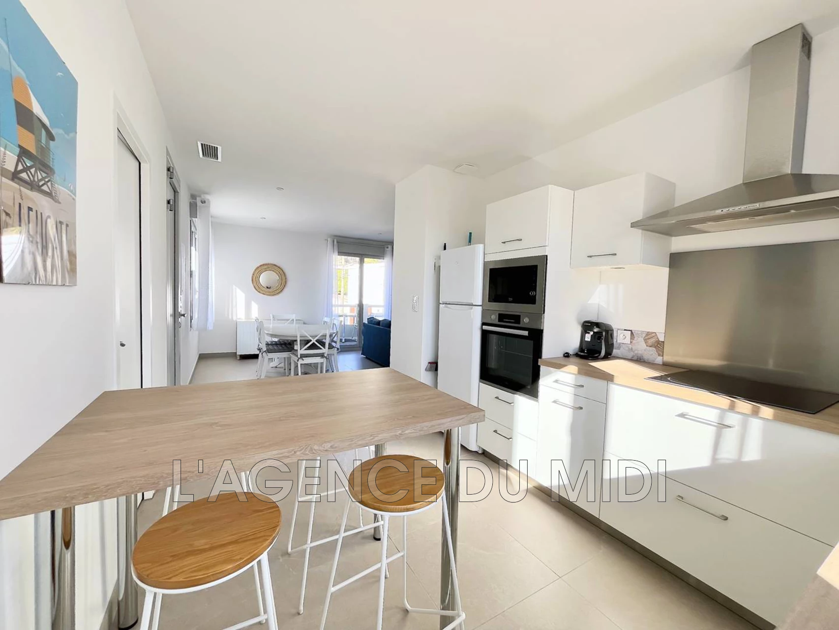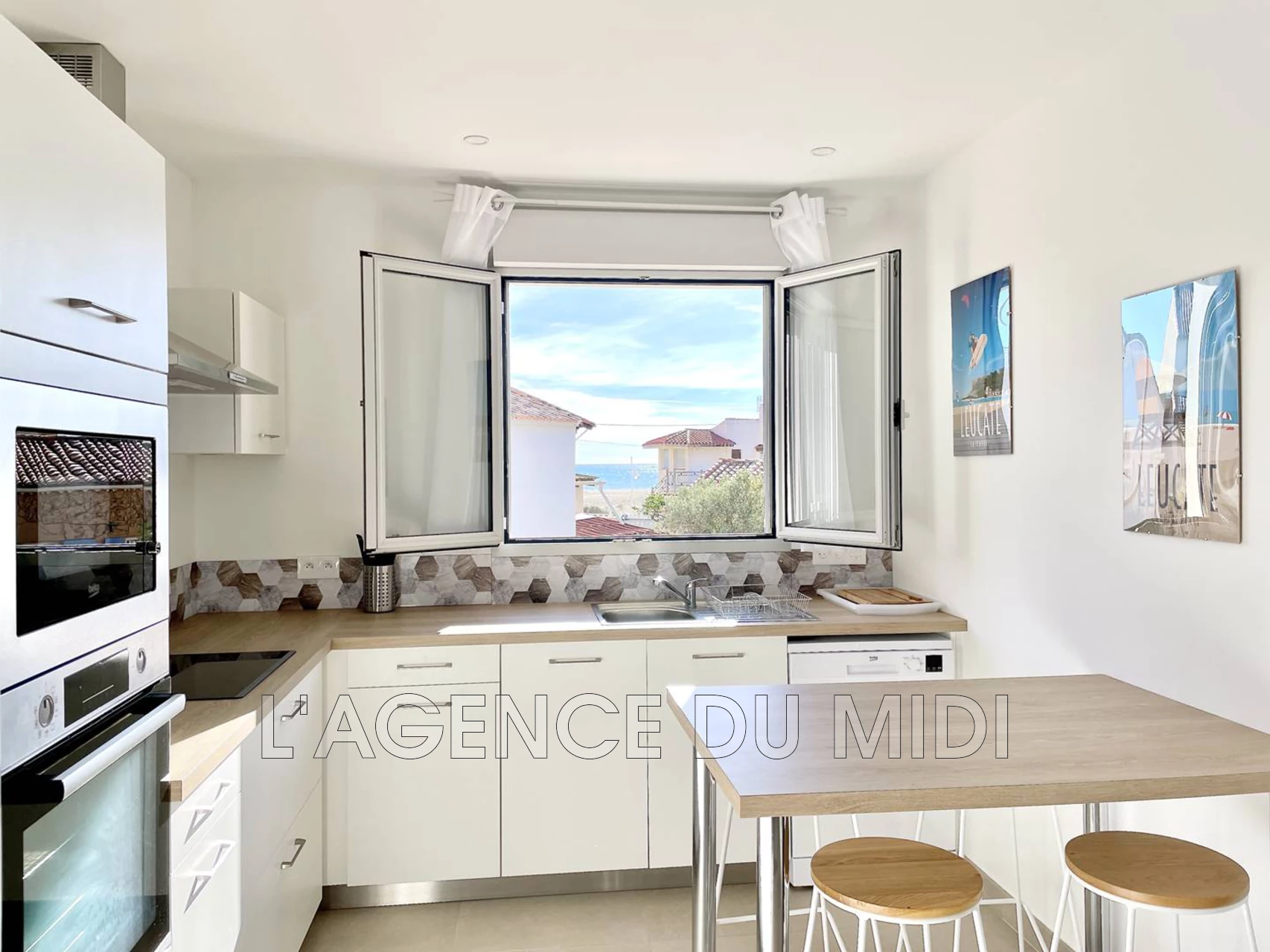 45 m² - Orientation : Nord-Ouest - Cuisine équipée: réfrigérateur-congélateur - four - micro-onde - Plaque de cuisson à induction - lave-vaisselle - machine à café Tassimo -Cafetière à filtres - bouilloire - grille- pain - hotte aspirante.