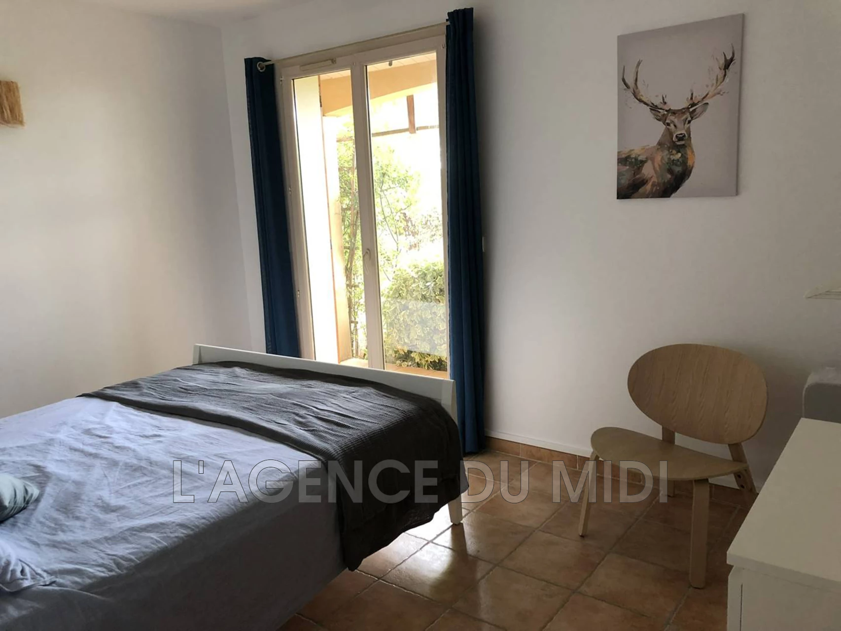 - une chambre avec un lit double ( 160X200 ) donnant accès au jardin.