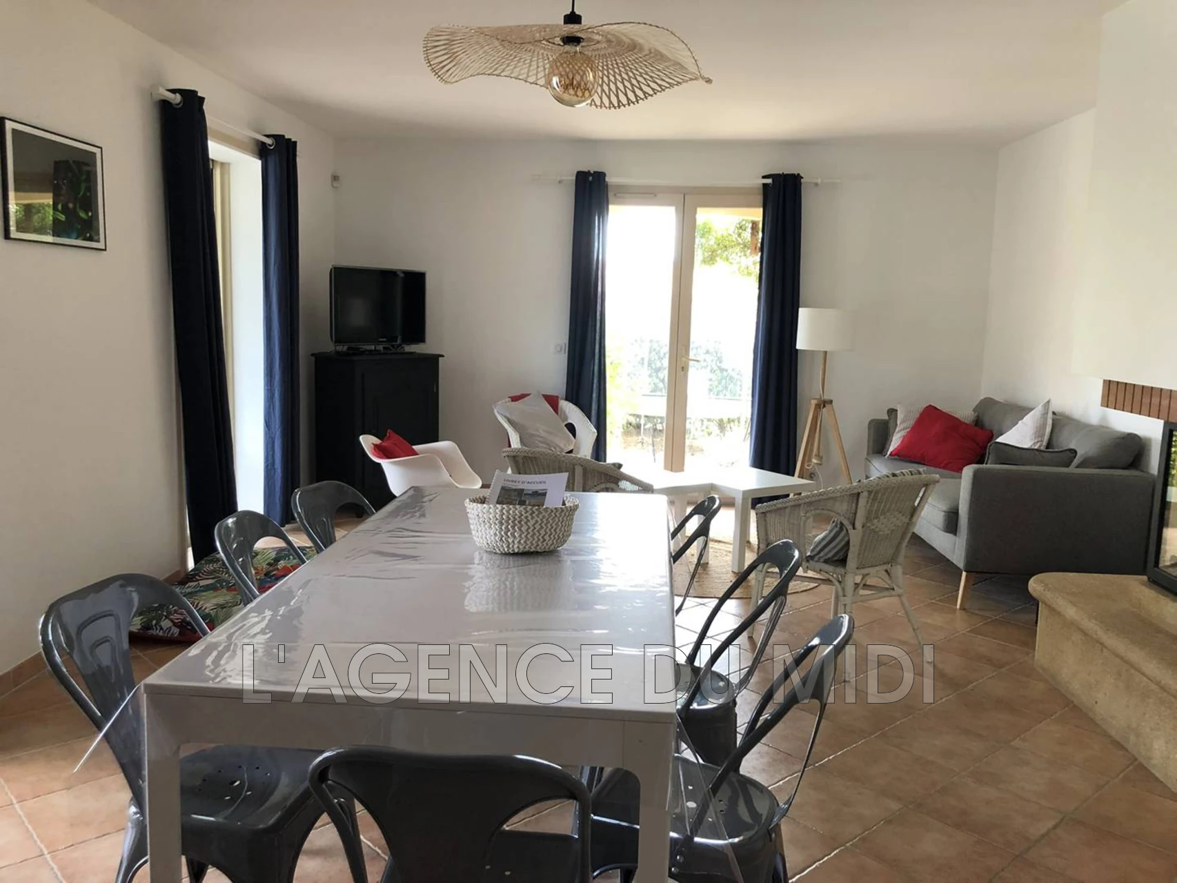 1 télévision, 1 canapé non convertible, 4 fauteuils, table de salle à manger, 8 chaises |