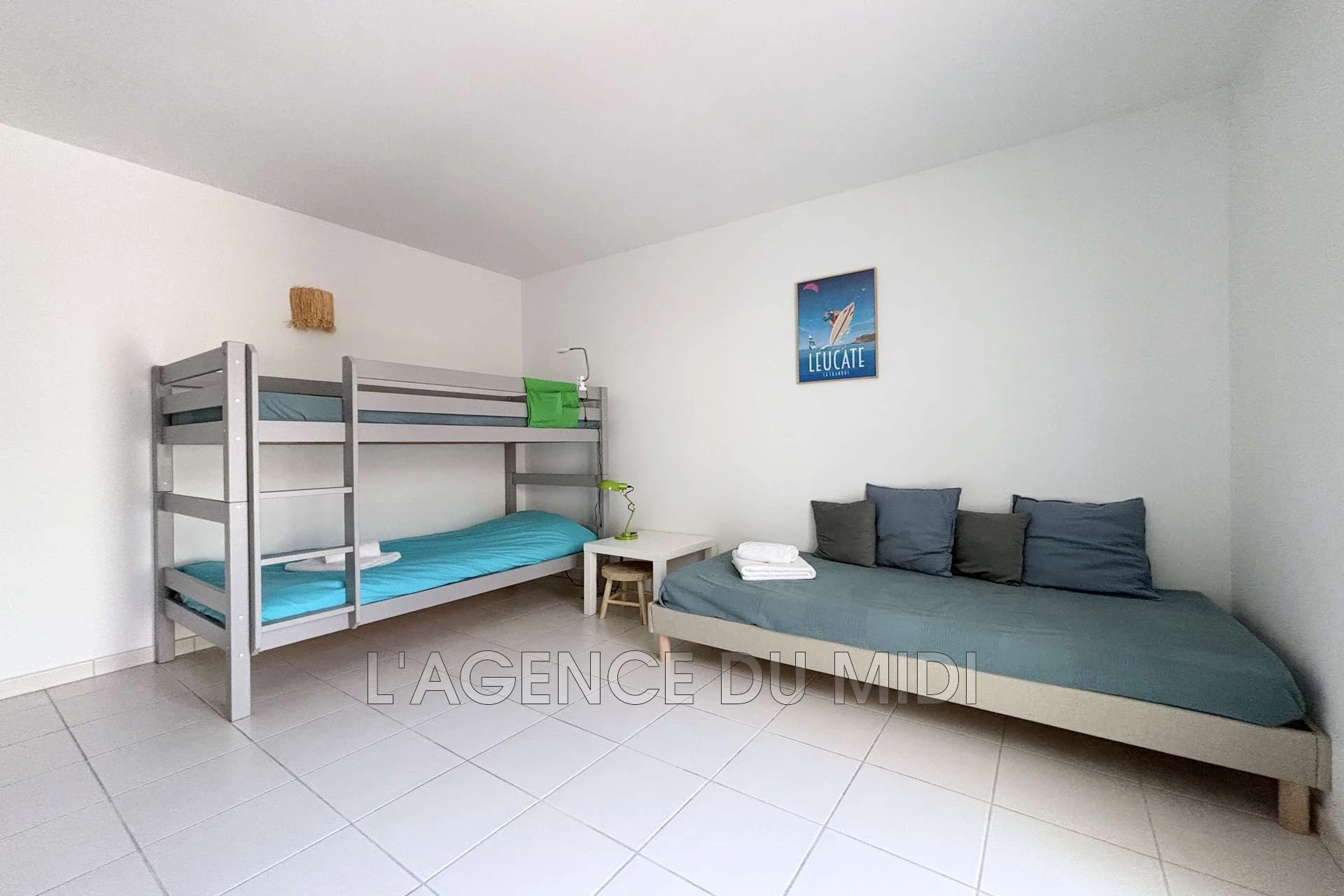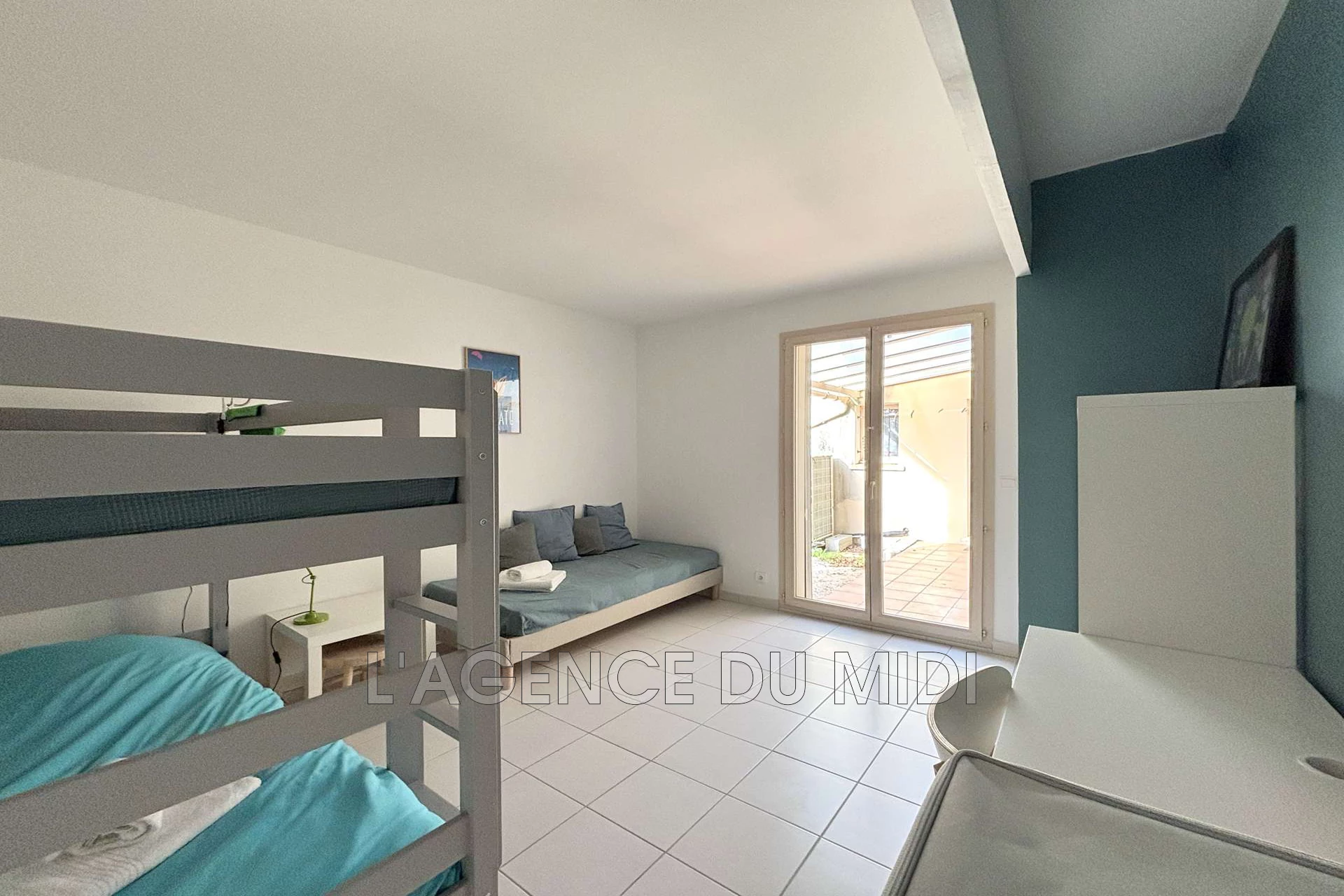 - une chambre pour enfant avec 2 lits superposés ( 90x190 ) et un lit simple ( 90x190).